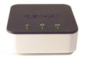 最初はOBi本体のLEDは赤が点滅するが、しばらくすると緑色に変わる。接続設定は以上。簡単だ。